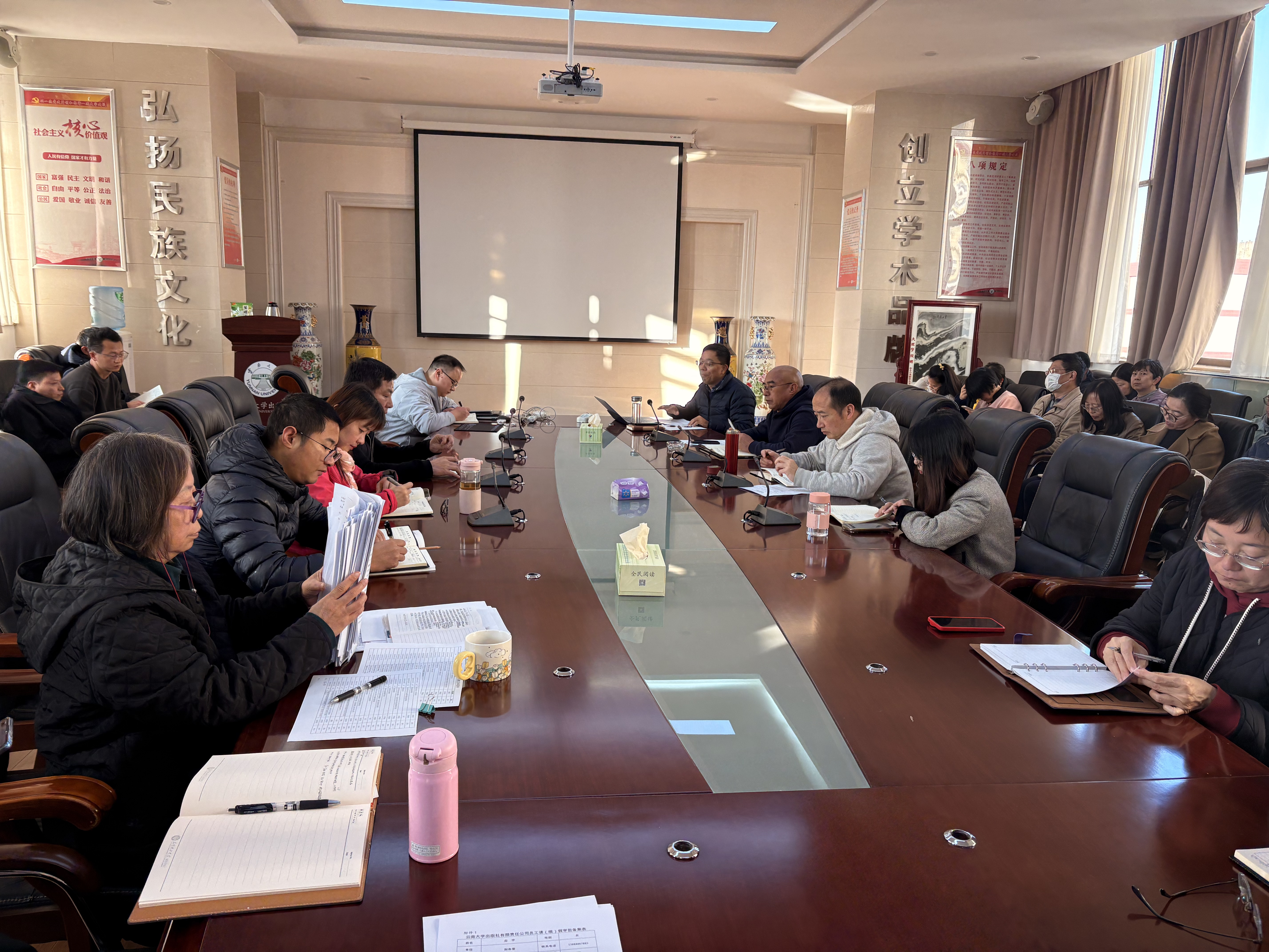 2026年1月27日,云南大学出版社召开全体员工大会,传达学习习近平总书记在省部级主要领导干部专题研讨班开班式上的重要讲话精神,总结2025年生产经营情况,并就当前重点工作进行部署。