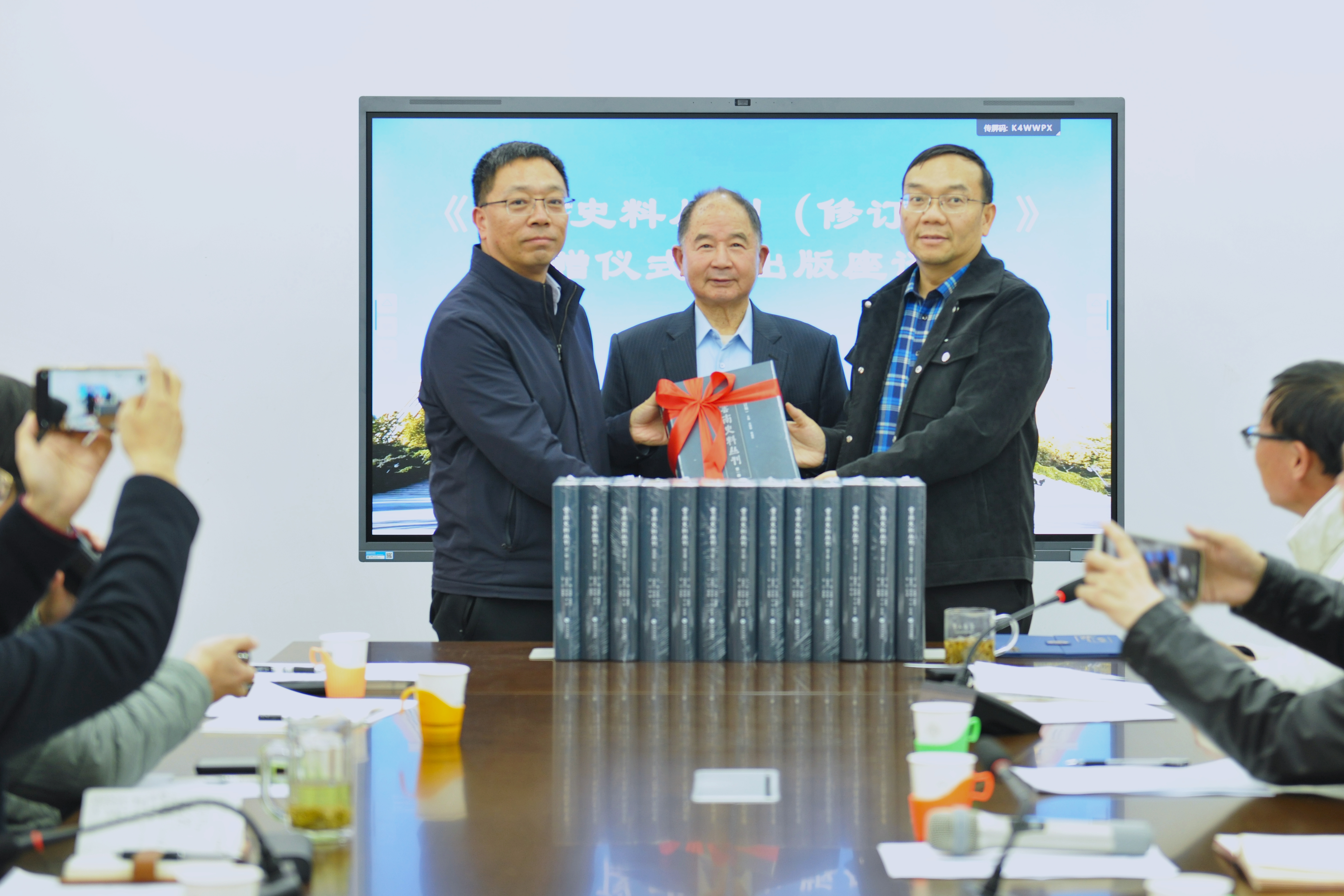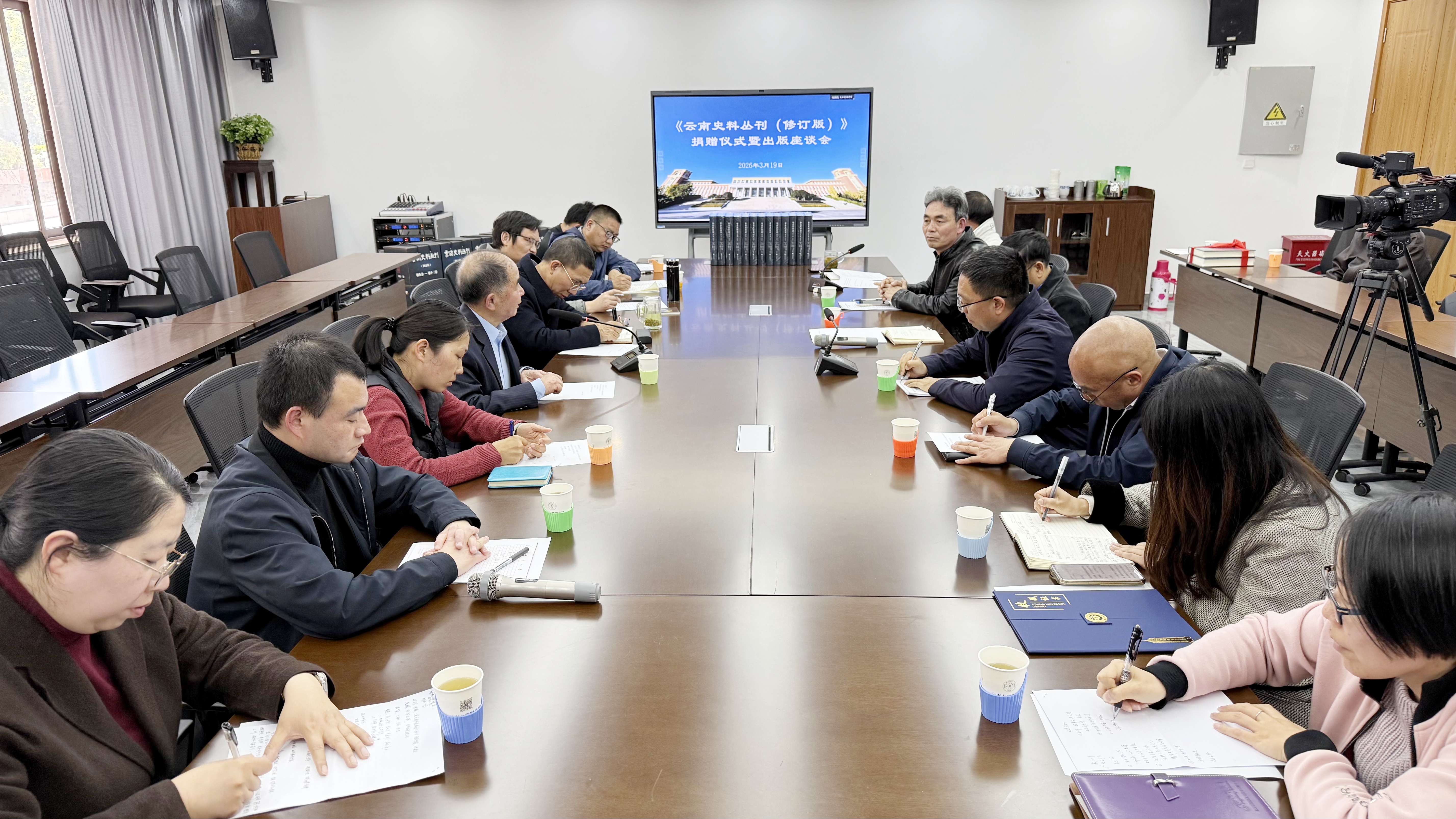 2026年3月19日,《云南史料丛刊(修订版)》捐赠仪式暨座谈会在云南大学东陆校区图书馆举行。云南大学原副校长、丛书主编林超民教授,历史与档案学院党委书记赵小平,出版社社长包崇许,图书馆馆长李怀宇,以及来自历史与档案学院、出版社、图书馆的相关领导和编委代表参加活动。图书馆副馆长李险峰主持会议。